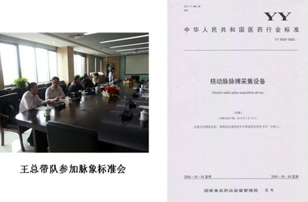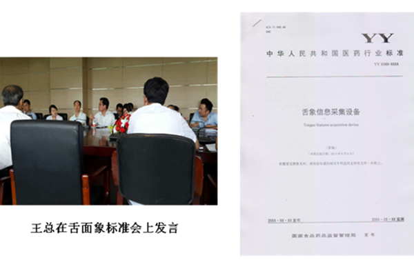 2014年4月,中華人民共和國醫(yī)藥行業(yè)中醫(yī)診斷行業(yè)標準會在天津醫(yī)療器械質(zhì)量監(jiān)督檢驗中心召開,公司作為中醫(yī)診斷行業(yè)標準制定方、驗證方,董事長王聯(lián)攜技術(shù)總監(jiān)、產(chǎn)品部經(jīng)理應(yīng)邀參加行業(yè)標準會議。
