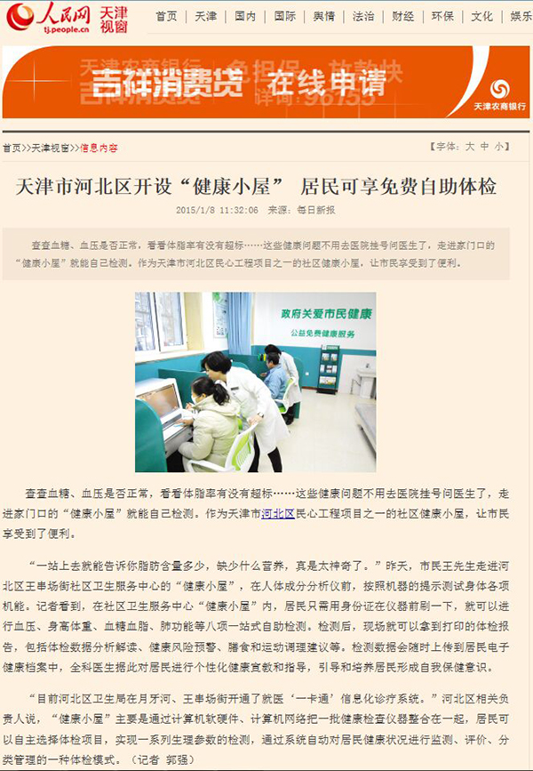 天津市河北區(qū)開設"健康小屋"居民可享受免費自助體檢