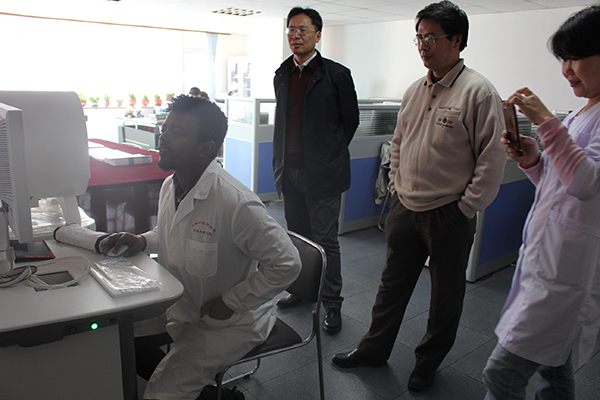 公司領(lǐng)導(dǎo)及于教授與留學(xué)生進行交流并指導(dǎo)學(xué)生進行實際操作1